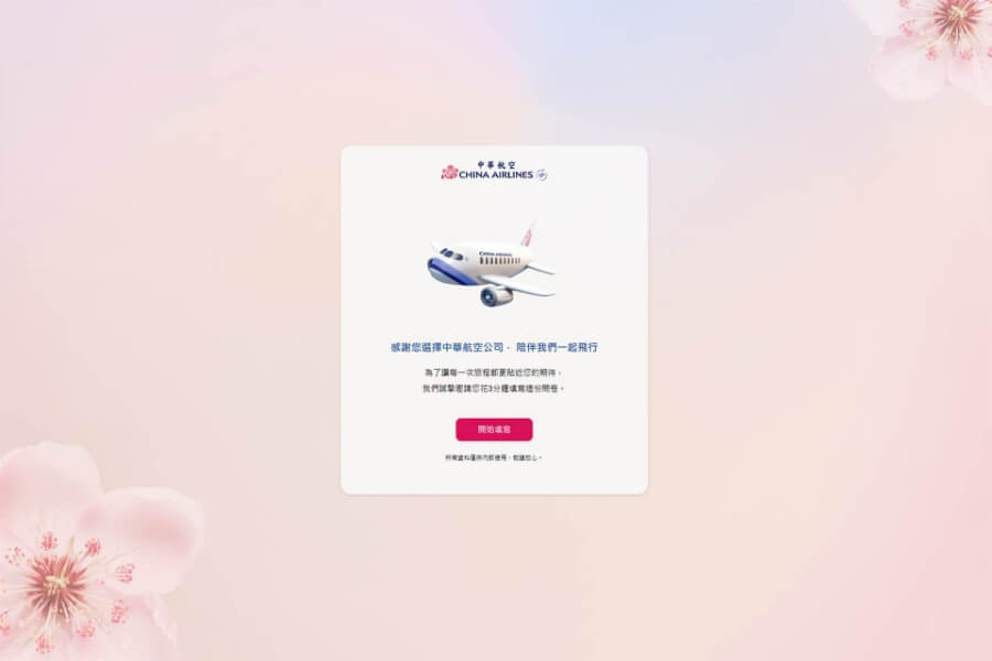 To make every flight closer to your expectations, China Airlines has launched a brand-new “Customer Service Experience Survey” starting in January 2026. This new survey is designed with the entire service process, and aims to gain deeper insights into your genuine experiences.