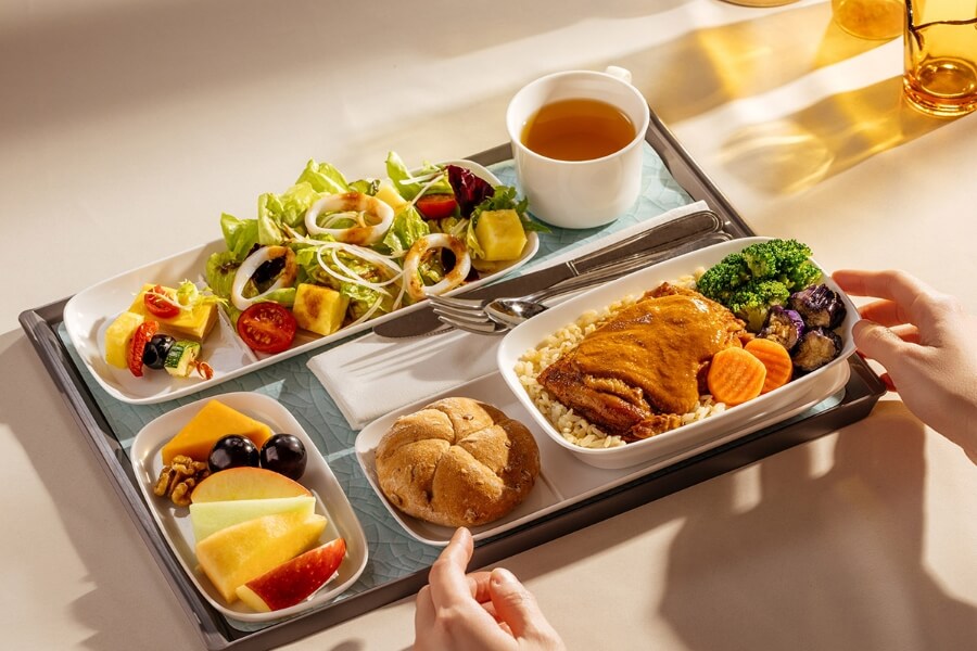 The design concept maintains the fusion of Modern and Eastern aesthetics, with a warm, delicate texture that highlights the minimalism and elegance of the all-new white porcelain tableware being introduced by China Airlines. The capacities and ratios of the new Multifunction Plate and Side Plate have been carefully adjusted as well to enhance the layout and dining experience. The Casserole is made from lightweight ceramics for better sustainability. Together, they complement the colorful and delicious meals that are pleasing both to the eyes and the taste buds of passengers.