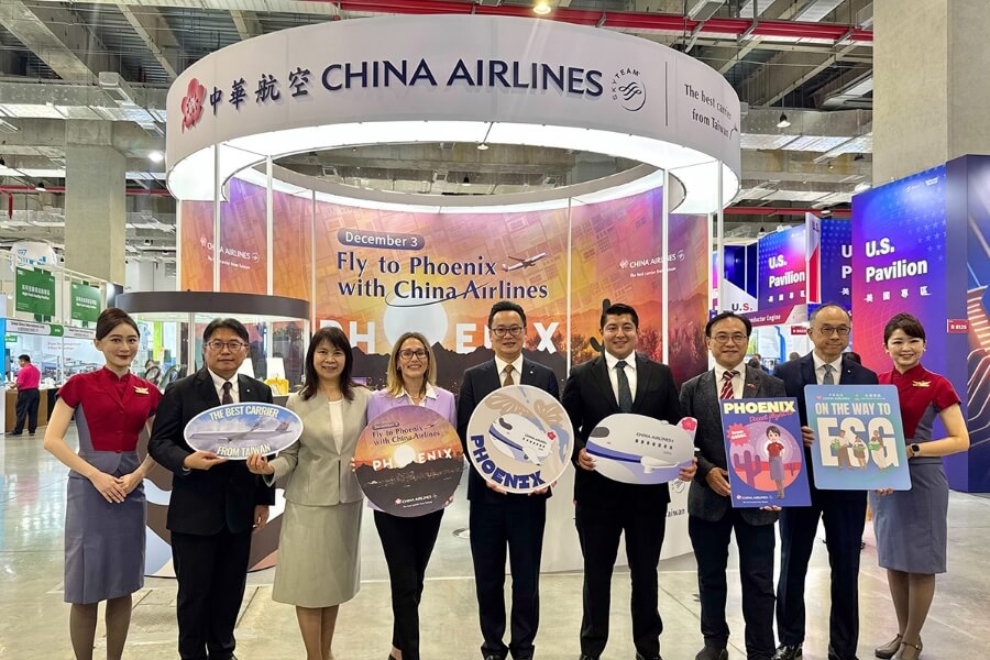 SEMICON Taiwan 作為全球最具影響力的半導體展之一,每年匯聚上千家廠商與數萬名專業人士,華航為本次唯一以實體攤位參展的航空公司,重點在推廣 12 月 3 日即將開航的鳳凰城;美國亞利桑那州商務局總裁 Sandra Waston 特別蒞臨華航攤位與總經理陳漢銘一同剪綵,看好新航點開航後為往返台美兩地的旅客帶來更多更廣的便利性。