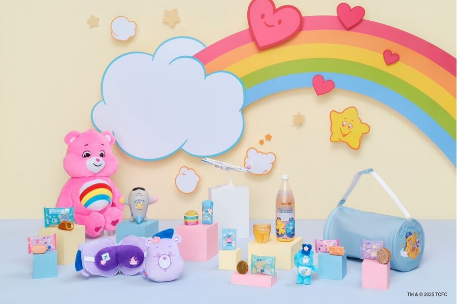 無論是個性開朗的歡樂熊 (Cheer Bear)、帶著睡帽的愛睡熊 (Bedtime Bear)、充滿陽光氣息的活力熊 (Funshine Bear)或是多愛熊 (Love-a-lot Bear)、生日熊 (Birthday Bear)及甜夢熊 (Sweet Dream Bear),每隻愛心小熊都以溫暖及關懷的特質陪伴旅客飛行。華航特別推出一系列 Care Bears™ 愛心小熊限定聯名周邊商品,包括造型飛機水壺、多功能眼罩靠枕、旅行收納袋、絨毛玩偶吊飾及撲克牌等,即日起於華航 eMall 網站開放預購,10 月 1 日開始陸續出貨,並同步於機上送貨到府販售。繽紛可愛又兼具實用性的設計,歡迎旅客把彩虹能量及好心情一同帶回家,療癒生活中的每一刻。