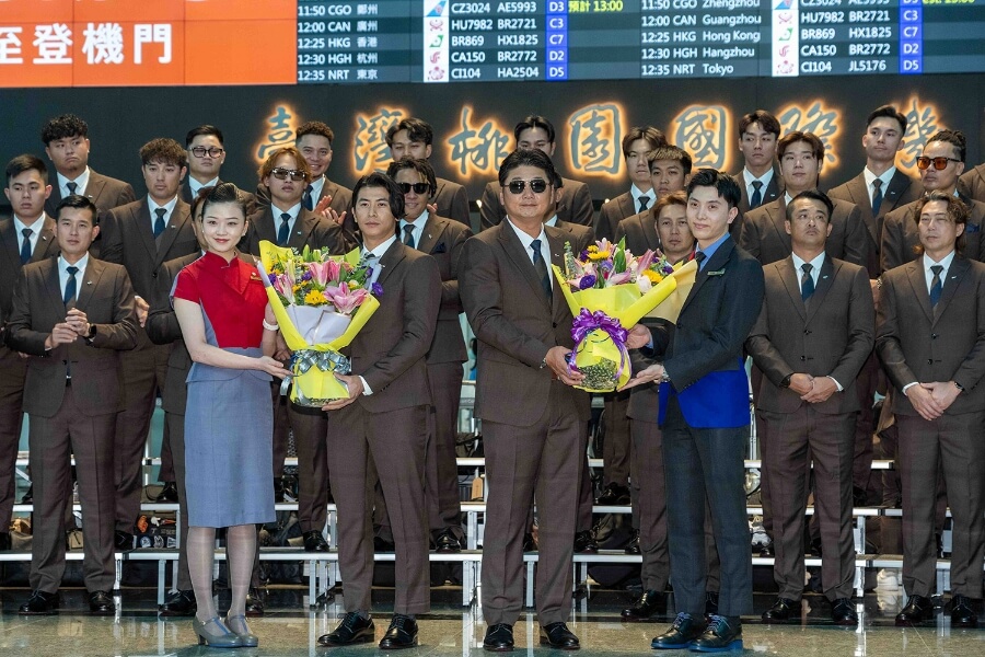 中華航空今(28)日以包機陪同 Team Taiwan 前往日本宮崎,力挺棒球好手踏上 2026 WBC 經典賽旅途,桃園機場現場充滿熱情的送機球迷夾道為台灣英雄歡呼,華航董事長高星潢特別致贈「馬到成功」琉璃座,總經理陳漢銘也到場打氣,制服人員獻上祝福花束,期盼中華隊能取得佳績,旗開得勝!